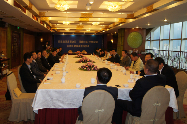 2012年11月23日上午,公司和福建省能源集團有限責任公司在美倫華美達大飯店正式簽署合作框架協議,根據協議,雙方就重點推進煤炭、水泥包裝袋、工業固體排放物、港口裝卸和文化紙等項目進行合作。公司董事長吳冰文、福能集團董事長林金本及公司其他領導、主要權屬企業負責人和有關部門人員20多人參加了簽約儀式,省國資委副主任邱志向、綜合處副處長羅奮應邀出席,邱副主任代表省國資委做重要講話。
